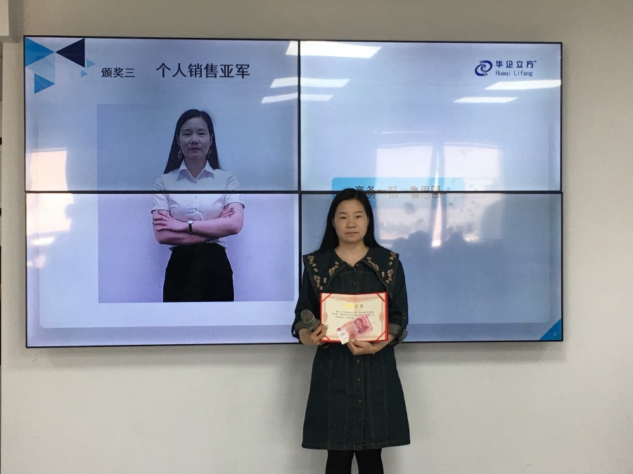 她不怕困难,无惧辛劳,勤勤恳恳,任劳任怨,勇于挑战自我,不断超越自我,对工作充满热情与活力,4月的销售亚军获得者就是每个月都稳居前三的商务一部的鲁思围。